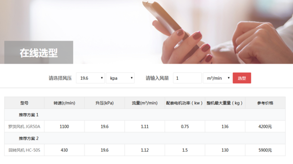 此外,還可以通過風機選型系統查詢回轉風機價格,如下圖客戶僅需輸入風量、選擇風壓,就可以方便、快速、準確、可靠地進行羅茨鼓風機、回轉式鼓風機等各類容積式風機的選型和價格查詢工作。風機選型系統地址:http://www.ddncsz.com/search.php