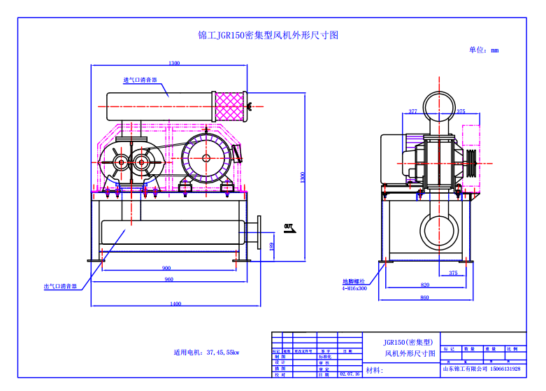 以上為羅茨風機外形尺寸圖,與國內各大品牌通用,CAD文件如有需要,可致電山東錦工有限公司索取。