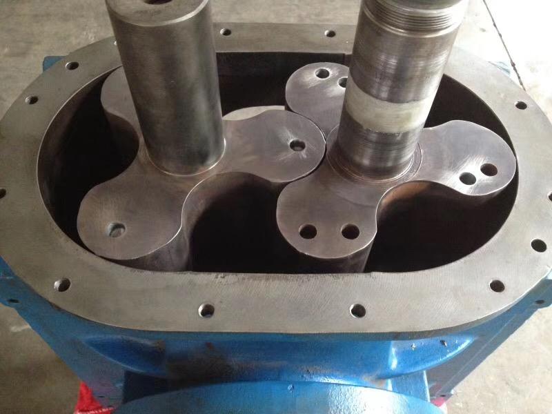 在中心距和外圓半徑相同的情況下, 圓弧葉型的三葉轉子羅茨鼓風機比二葉的排量要大。漸開線葉型羅茨鼓風機的排量和轉子的頭數沒有關系。