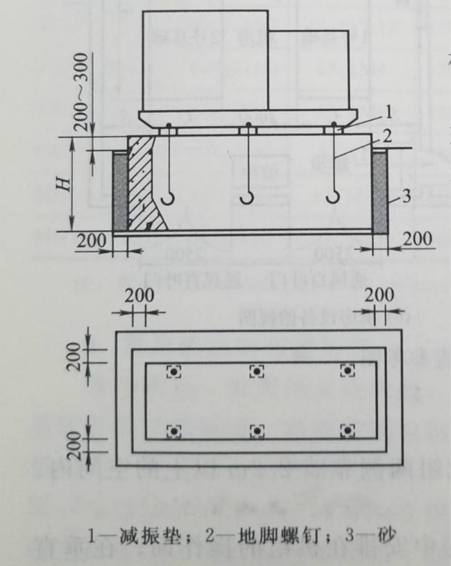 2、按三葉羅茨鼓風機基礎與地腳螺栓圖做地基,混凝土基礎留有充裕的地腳螺栓安裝孔。
